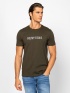 Tricou bărbătesc cu mânecă scurtă, croială dreaptă, guler rotund, logo mare aplicat pe față, etichetă țesută pe lateral. Material: 100% bumbac, single jersey. Modelul are 188 cm înălțime și poartă mărimea L.