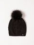 Caciula tricotata pentru femei cu decoratiuni cu margele, branding mic pe lateral, pompon decorativ. Material: 75% acril, 24% poliester, 3% elastan.