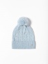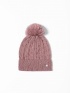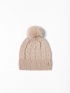 Căciulă tricotată pentru femei cu un model răsucit, realizată dintr-un material confortabil din amestec de lână, cu paiete mici, un pompon decorativ și un mic logo metalic al mărcii pe lateral. Material: 50% acril, 24% poliamidă, 19% poliester, 7% lână.