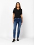 Blugi pentru femei cu design clasic, 5 buzunare, închidere cu fermoar, găici pentru curea, croială slim, talie înaltă, capse și nasture cu logo, confecționați din bumbac amestecat cu elastan. Material: 99% bumbac, 1% elastan, denim. Modelul are 175 cm înălțime și poartă mărimea 27. Cureaua nu este inclusă.