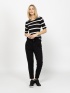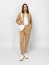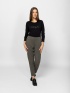 Pantaloni lungi pentru femei, confecționați din material confortabil și elastic, cu talie elastică și tiv îndoit, picioare conice, buzunare laterale și buzunar fals la spate. Material: 63% viscoză, 32% nailon, 5% elastan. Modelul are 175 cm înălțime și poartă mărimea S.