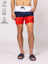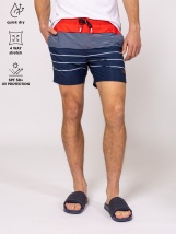 Pantaloni scurti de inot pentru barbati din material elastic cu uscare rapida in patru directii, croiala clasica, model in dungi, logo mic al brandului pe partea din fata, buzunar la spate cu inchidere velcro. Talia este elastica, ajustabila cu snur, cu buzunare interne. Material 92% poliester 8% elastan elasticitate in patru directii protectie UV SPF 50 captuseala 100 poliester plasa. Modelul are 188 cm inaltime si poarta marimea M.