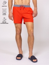 Pantaloni scurti de baie pentru barbati din material elastic in patru directii, cu uscare rapida, croiala clasica, culoare uni, logo mic al brandului in fata si in spate, buzunar l