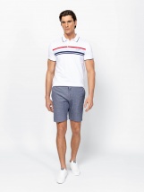 Șorturi pentru bărbați cu croială confortabilă, buzunare frontale și un buzunar la spate, confecționate din material elastic confortabil. Material: 76% bumbac, 19% poliester, 5% elastan. Modelul are 188 cm înălțime și poartă mărimea M.