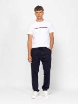 Pantaloni de trening pentru bărbați cu o croială confortabilă, picior conic, ajustabili cu șnur, talie elastică, buzunare, material respirabil, logo mic al brandului pe față. Material: 80% bumbac, 20% poliester, interior fleece periat. Modelul are 188 cm înălțime și poartă mărimea M.