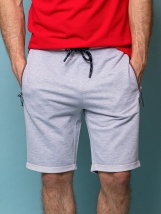 Pantaloni scurti pentru barbati cu elastic si cu snur in talie, buzunare cu fermoar si decor cu logo mic. Material: 80% bumbac,20% poliester, frotir. Modelul are o inaltime de 188