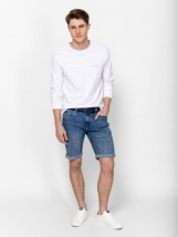 Pantaloni scurți din denim pentru bărbați, cu un stil Bermuda cu 5 buzunare, închidere cu fermoar și croială regular fit. Cureaua nu este inclusă cu pantalonii scurți. Material: 72% bumbac, 26% poliester, 2% elastan. Modelul are o înălțime de 188 cm și poartă mărimea M.