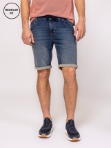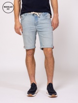 Pantaloni scurti din denim pentru barbati, cu croiala regular fit, design clasic cu cinci buzunare, inchidere cu fermoar, talie elastica si snur de strangere, cu un mic logo tesut