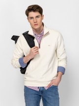 Hanorac pentru bărbați cu guler înalt și fermoar la gât, asortează-l cu pantalonii noștri ZENDY și ZANNER. Material: țesătură jacquard 100% bumbac. Modelul are 188 cm înălțime și poartă mărimea L.