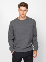 Bluza pentru bărbați cu guler rotund, aspect clasic, din mai multe materiale, cu branding mic țesut pe mânecă. Material: față: 50% poliester, 48% bumbac, 2% elastan, material jacqu