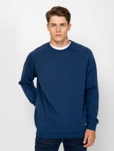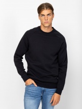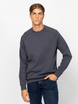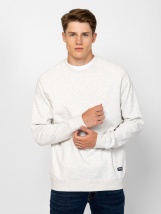 Pulover bărbătesc cu guler rotund, croială sport, manșete și tiv cu nervuri, și o etichetă mică țesută cu brandul în partea de jos, în față. Material: 80% bumbac, 20% poliester, fleece periat pe interior. Modelul are 188 cm înălțime și poartă mărimea L.