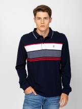 Tricou polo pentru bărbați cu mâneci lungi, în dungi la modă și albastru marin uni, cu guler stilat cu nasturi, manșete cu croială rib, din bumbac pur, un mic logo țesut al brandului pe partea din față și o etichetă țesută pe lateral. Material: 100% bumbac, oxford pique. Modelul are 188 cm înălțime și poartă mărimea L.
