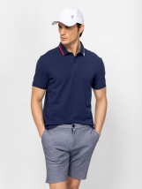 Tricou polo pentru bărbați, cu mâneci scurte, croială regular și guler cu nasturi. Logo-ul mic al brandului este pe guler. Material: 100% bumbac, pique. Modelul are 188 cm înălțime