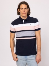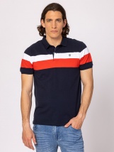 Tricou polo pentru barbati din material in dungi, cu croiala clasica, slit lateral, inchidere eleganta cu nasture si guler, logo mic imprimat pe partea din fata. Partea inferioara a manecii este finisata cu o margine rib pentru confort sporit. Material: 100% bumbac, pique. Modelul are 188 cm inaltime si poarta marimea L.