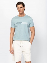 Tricou pentru bărbați cu mânecă scurtă, guler rotund, croială regular fit, cu branding pe partea din față. Material: 100% bumbac, single jersey. Modelul are 188 cm înălțime și poartă mărimea L.