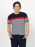 Tricou pentru bărbați cu mânecă scurtă, guler rotund, croială regular fit, realizat din material piqué în dungi, cu un mic logo al brandului pe partea din față. Material: 100% bumb