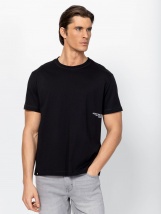 Tricou pentru bărbați cu mânecă scurtă, guler rotund, croială lejeră și logo mic al brandului pe față. Material: 100% bumbac single jersey. Modelul are 188 cm înălțime și poartă mă