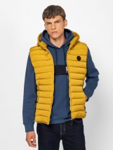Vestă matlasată cu glugă pentru bărbați, cu o croială confortabilă, glugă ajustabilă și detașabilă, buzunare cu fermoar, buzunare interioare și un mic logo pe partea din față. Material: exterior: 100% poliester, căptușeală: 100% nailon, umplutură: 100% poliester. Modelul are 188 cm înălțime și poartă mărimea L.