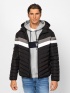 Geaca matlasata pentru barbati cu gluga, croiala sport confortabila, gluga fixa ajustabila, fenta interioara impotriva vantului, buzunare cu fermoar, buzunar interior cu fermoar, logo mic al brandului pe maneca. Material: exterior: 100% poliester, captuseala: 100% nailon, umplutura: 100% poliester. Modelul are 188 cm inaltime si poarta marimea L.Puține detalii