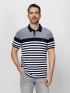 Tricou polo pentru bărbați, cu mânecă scurtă, croială regular și guler cu nasturi. Fabricat din material în dungi, cu un mic logo al brandului pe față. Material: 100% bumbac, pique. Modelul are 188 cm înălțime și poartă mărimea L.