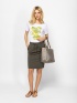 Fustă creion pentru femei, lungime până la genunchi, cu talie elastică și șnur, realizată din material cu dungi și uni. Material: 63% viscoză, 32% nailon, 5% elastan. Modelul are 175 cm înălțime și poartă mărimea S.