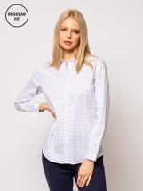 Camasa dama cu croi larg, guler decorativ, inchidere cu nasturi, tesatura din bumbac cu elastan, modele elegante, logo brodat pe partea din fata, logo mic metalic pe partea din spa