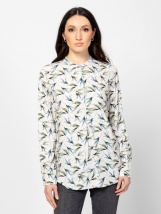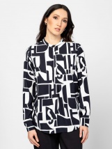 Bluză cămașă pentru femei cu croială evazată, guler decorativ ridicat, închidere ascunsă cu nasturi, manșete cu nasturi, material de viscoză ușor de manevrat, modele șic, branding metalic mic pe spate. Material: 100% viscoză. Modelul are 175 cm înălțime și poartă mărimea S.
