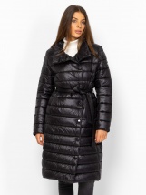 Palton de damă dintr-un material matlasat șic, în culori clasice, cu o croială super feminină, lungime până la genunchi, închidere cu capse, talie cu curea, buzunare integrate și un mic logo metalic pe mâneci și spate. Material: exterior: 100% nailon, ușor, căptușeală: 100% nailon, umplutură: 100% poliester. Modelul are 175 cm înălțime și poartă mărimea S.