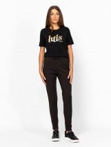 Pantaloni de damă cu picior conic, buzunar ascuns cu fermoar, talie ajustabilă cu şnur elastic, material tehnic, logo mic imprimat pe partea din faţă. Poartă-i cu topul nostru TATI