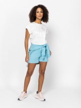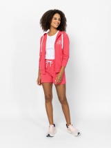Șorturi de jogging pentru femei, croială regular fit, cu talie elastică și șnur, lungime până la jumătatea coapsei, buzunare laterale și un mic logo al brandului pe față. Material: