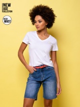 Pantaloni scurti pentru dame. Material: 99% bumbac, 1% elastan, denim. Modelul are o inaltime de 175 cm si poarta marimea S. Cureaua nu este inclusa.
