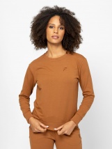 Pulover de damă cu croială clasică, guler rotund, tiv și manșete ribate, realizat dintr-un material cu conținut ridicat de bumbac, cu un mic logo brodat al mărcii pe partea din faț