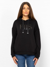 Hanorac pentru femei, cu croială mai largă, umeri căzuți, culori la modă, branding imprimat pe față și pietre. Poartă-l cu pantalonii noștri ZEDALLAW25 din noua colecție. Material: 55% poliester, 38% modal, 7% elastan. Modelul are 175 cm înălțime și poartă mărimea S.