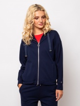 Hanorac cu fermoar pentru femei, croiala mai larga, umeri cazuti, buzunare drepte, culori la moda, mic branding metalic pe maneca, captuseala glugii cu logo. Poarta-l cu pantalonii