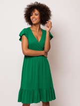 Rochie clasica pentru dame cu decolteu in V. Decor cu logo mic. Material: 50% bumbac, 50% modal, single jersey. Modelul are o inaltime de 175 cm si poarta marimea M.