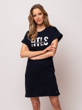 Rochie pentru dame cu logo mic. Material: 50% bumbac, 50% modal, single jersey. Modelul are o inaltime de 175 cm si poarta marimea M.