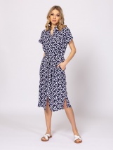 Rochie camasa pentru femei cu croi drept, umar cazut, rever, maneci scurte, talie ajustabila cu curea, lungime sub genunchi, modele interesante, tesatura din viscoza usor de intret