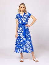 Rochie camasa pentru femei cu maneci scurte, guler decorativ, maneci cu rever, croi lung, fusta larga, talie ajustabila cu curea. Material: 100% viscoza. Modelul are 175 cm inaltim