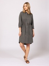 Rochie camasa pentru femei cu croi drept, maneci 3/4, inchidere cu nasturi ascunsi, talie ajustabila, lungime deasupra genunchilor, mic logo metalic pe spate. Material: 92% poliest