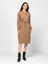 Rochie de damă cu o croială confortabilă, ușor cambrată, închidere cu fermoar în față, guler înalt, talie reglabilă cu șnur, buzunare integrate, material elastic, branding metalic