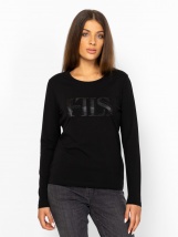 Tricou cu mânecă lungă pentru femei, cu croială slim, guler rotund, din bumbac amestecat cu elastan, imprimeu ton pe ton și pietre pe partea din față, branding metalic mic pe spate. Material: 95% bumbac și 5% elastan single jersey. Modelul are 175 cm înălțime și poartă mărimea S.