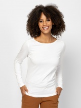 Tricou cu mânecă lungă pentru femei, cu o croială ușor cambrată, guler rotund, realizat din bumbac pur, cu un mic logo brodat al mărcii pe partea din față și o etichetă țesută pe l
