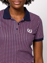 Tricou polo pentru femei cu maneci scurte, croiala usor cambrata, guler cu nasture decorativ, culori tricolore si un mic model. Fabricat din material confortabil din bumbac, cu un mic logo al brandului pe partea din fata. Material: 97% bumbac, 3% elastan, pique. Modelul are 175 cm inaltime si poarta marimea S.Puține detalii