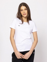 Tricou pentru femei cu maneca scurta, croiala usor cambrata, decolteu rotund, confectionat din bumbac amestecat cu elastan, cu un mic logo imprimat al brandului pe partea din fata. Material: 95% bumbac, 5% elastan, single jersey. Modelul are 175 cm inaltime si poarta marimea S.