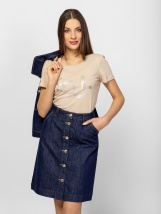 Tricou pentru femei cu mânecă scurtă, croială slim fit și guler rotund, cu un imprimeu decorativ pe față. Material: 95% bumbac, 5% elastan, single jersey. Modelul are 175 cm înălți... Mai multe detalii