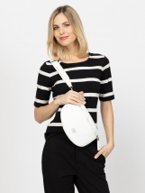 Tricou pentru femei cu mânecă scurtă, croială slim fit, guler rotund și mâneci până la cot. Fabricat din material în dungi, cu un mic logo al brandului pe față. Material: 95% bumba