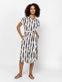 Rochie cămașă pentru femei, lungime sub genunchi, închidere cu nasturi, talie ajustabilă cu o curea. Mâneci scurte, umeri căzuți, buzunar lateral, realizată din material cu model. Material: 100% vâscoză. Modelul are 175 cm înălțime și poartă mărimea S.