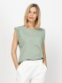Maiou de damă cu croială dreaptă, decolteu rotund și detalii din dantelă. Material: 100% bumbac, jerseu slub. Modelul are 175 cm înălțime și poartă mărimea S.