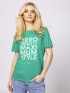 Tricou unisex cu mânecă scurtă, cu croială dreaptă, gât rotund, branding imprimat pe față, etichetă țesută pe lateral. Material: 100% bumbac, jersey simplu. Modelul feminin are 175